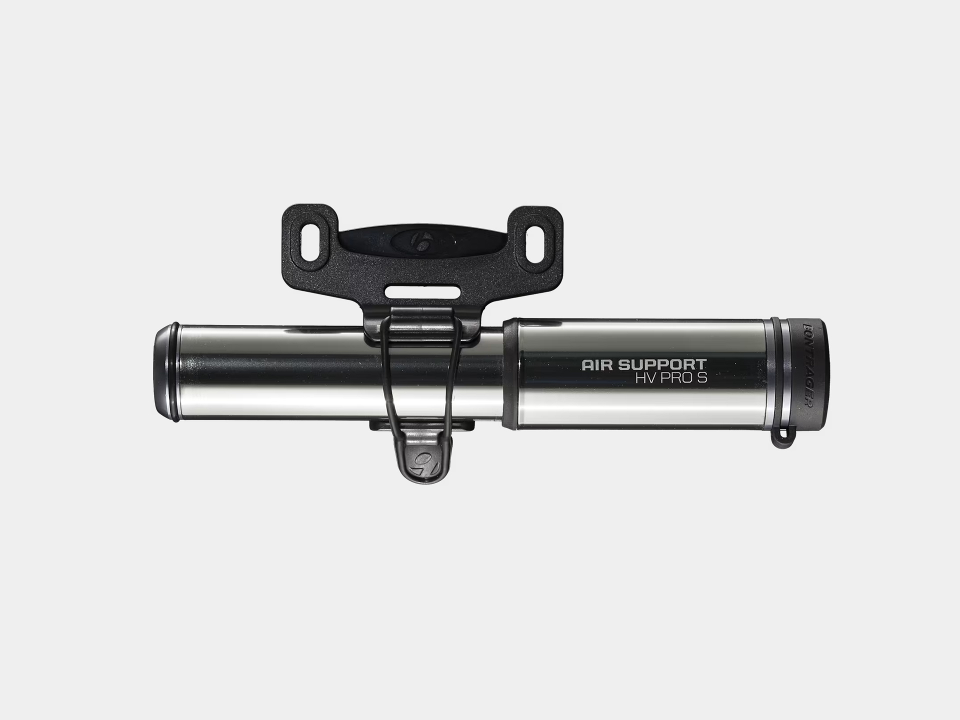 La Air Support HV Pro se guarda fácilmente en el bolsillo de tu maillot o en una bolsa y proporciona inflado fácil para llantas de gran volumen. Una manguera de aire extensible ayuda a eliminar el estrés en el vástago de válvula y una cámara más grande permite el inflado rápido hasta a 60 PSI. Esta minibomba refinada tiene un terminado de plata pulida y viene con un soporte para montarse en la bici.