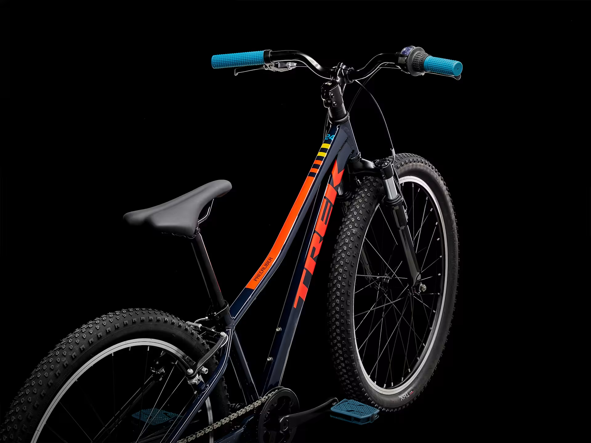 La Precaliber 24 de 8 velocidades y suspensión es versátil y fue construida para niños aventureros que adoran salir del pavimento para andar por la tierra. Cuenta con un cuadro de aluminio resistente pero ligero, una tijera de suspensión rendidora y una transmisión de 8 velocidades ideal para correr carreras de la escuela a casa, pasar volando entre los bosques y rodar sobre senderos y caminos con la familia. Para niños de 8 a 12 años, entre 1.30mts a 1.50mts